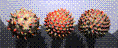 | Eine schnelle - und deswegen häufig benutzte Methode ist das “ordered Dither”. Für jede der 256 möglichen Werte einer Farbkomponente (die da wären: Rot, Grün und Blau) liegt ein Muster in einer Tabelle vor, das insgesamt diesen Farbwert auf die vorhandene Palette dithert. Da diese Tabelle alle paar Punkte wiederholt wird sind die Muster im Ergebnissbild sehr regelmäßig. |