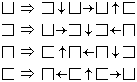 Eine Elementarkurve füllt einen 2x2 Raum und wird bei größeren Kurven mit Vektoren aneinandergehängt. Die Regeln für das aneinanderhängen sieht man im unteren Bild: |